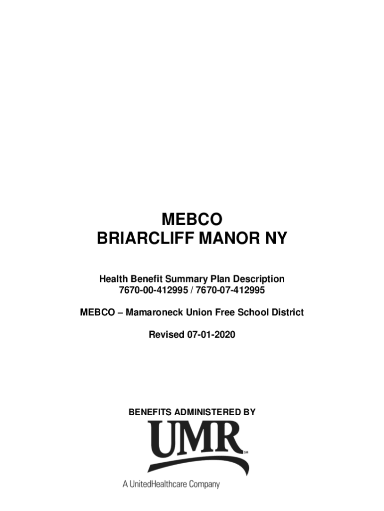 MEBCO BRIARCLIFF MANOR NY Health Benefit Summary Plan Description 767000412995 / 767007412995 MEBCO Mamaroneck Union Free School District Revised 07012020BENEFITS ADMINISTERED BYTable of Contents