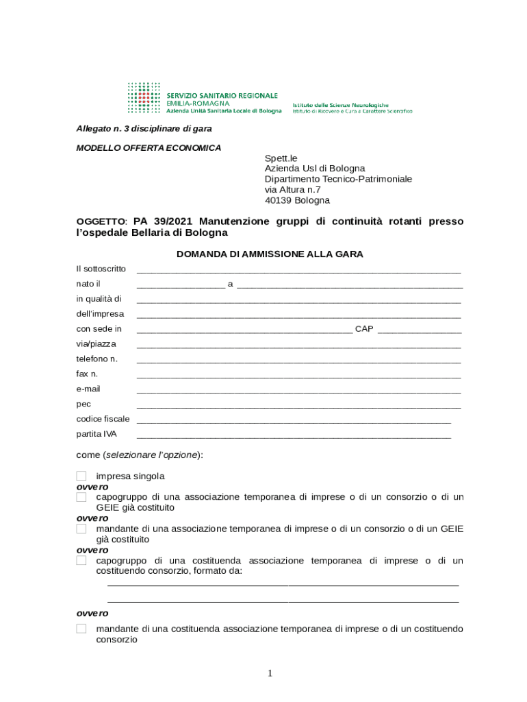 All 3 disciplinare di gara- Modello offerta elemento tempo template instructions