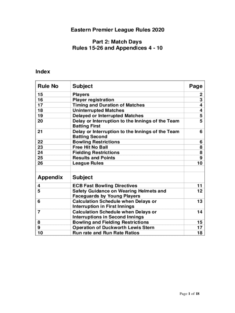 Eastern Premier League Rules 2020