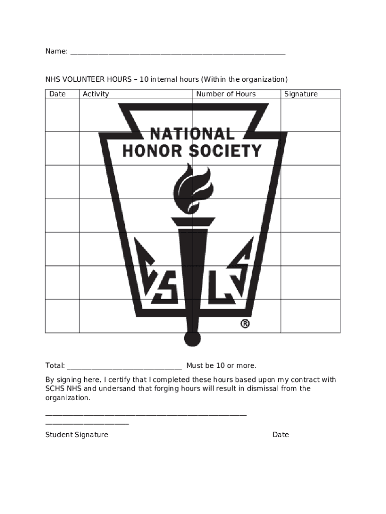 Date Activity/Service Hours Signature Total Hours template instructions