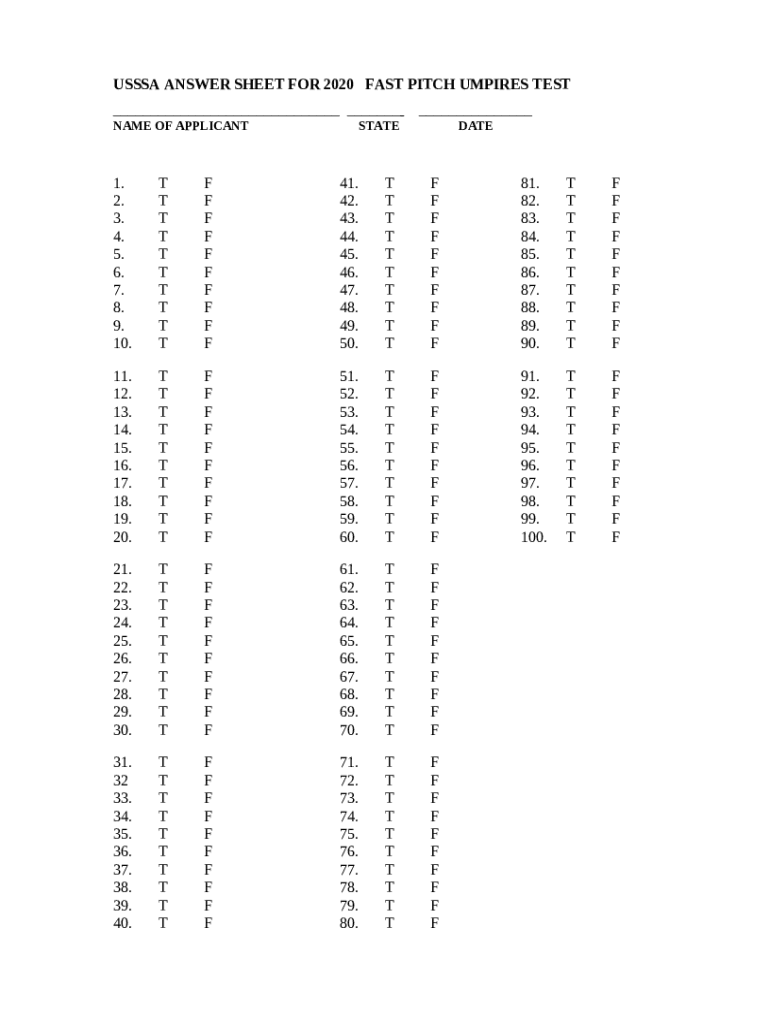 Frequently asked questions about the form NATIONAL SOFTBALL ASSOCIATION ANSWER SHEET