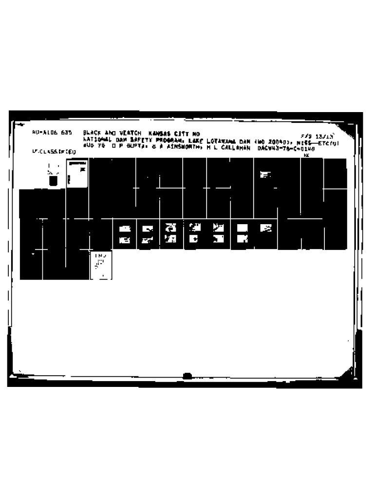 ADAIOb 635UNJCLASSIFIEDBLACK AND VEATCH KANSAS CITY NO F/B 13/13\' NATIONAL DAM SAFETY PROGAM. LAKE LOTAWANA DAM (MO 20040), MISSETC(U) AUG 78 0 P GUPTA, b A AINSWORTH. H L CALLAHAN DACW4378CO148