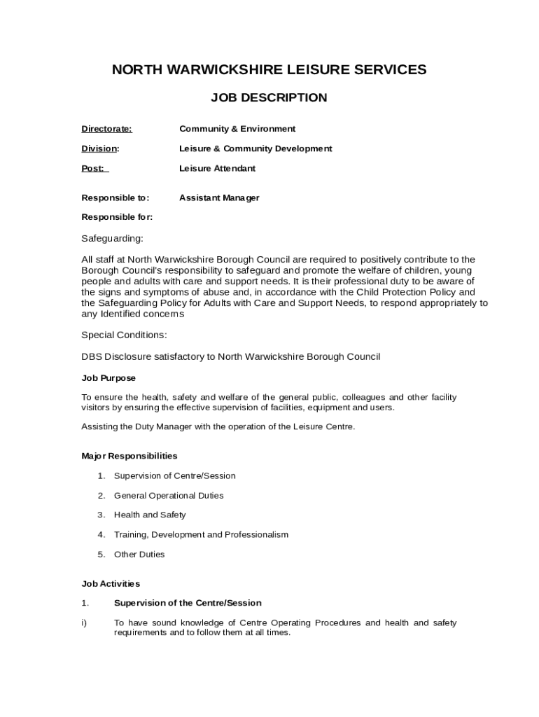 Instructions for the form NORTH WARWICKSHIRE LEISURE SERVICES