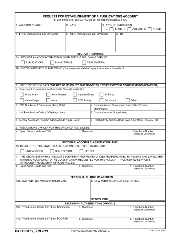Get the free da form 12