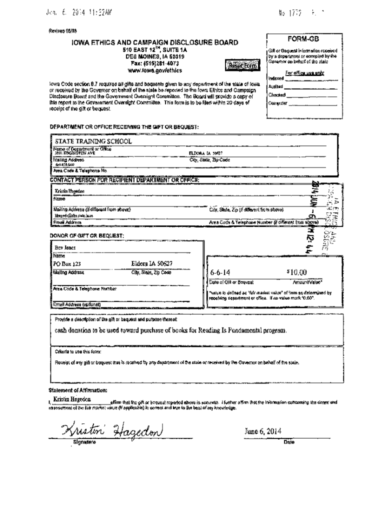 Jun.6. 2014 11:32AMNo. 1772P. Revl\'led 06/08FORMGBIOWA ETHICS AND CAMPAIGN DISCLOSURE BOARD