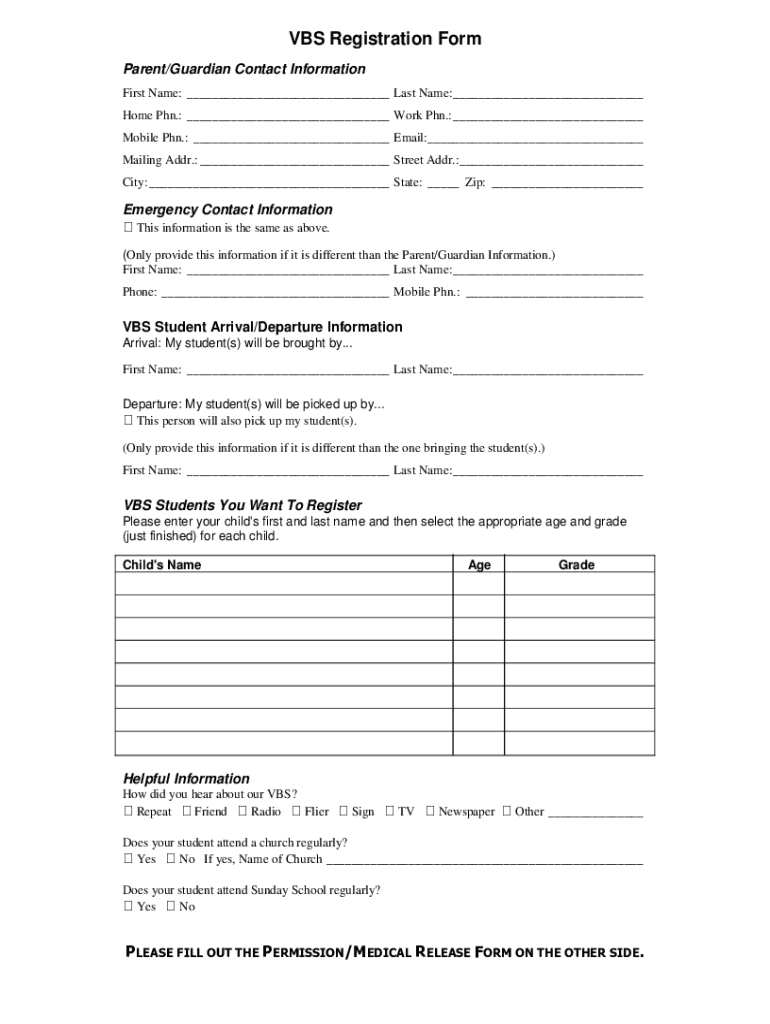 These forms are also required by the organizers of the VBS program to gather all the necessary information about the participating students.