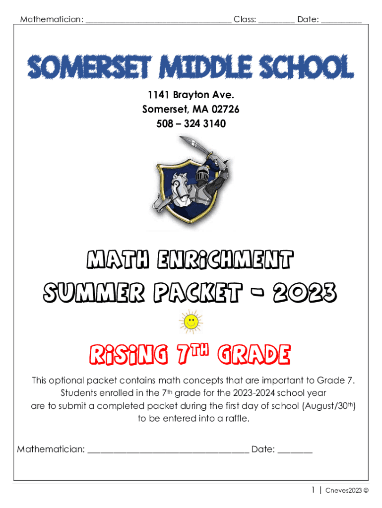 508 324 3140MATH ENRICHMENTSUMMER packet 2023