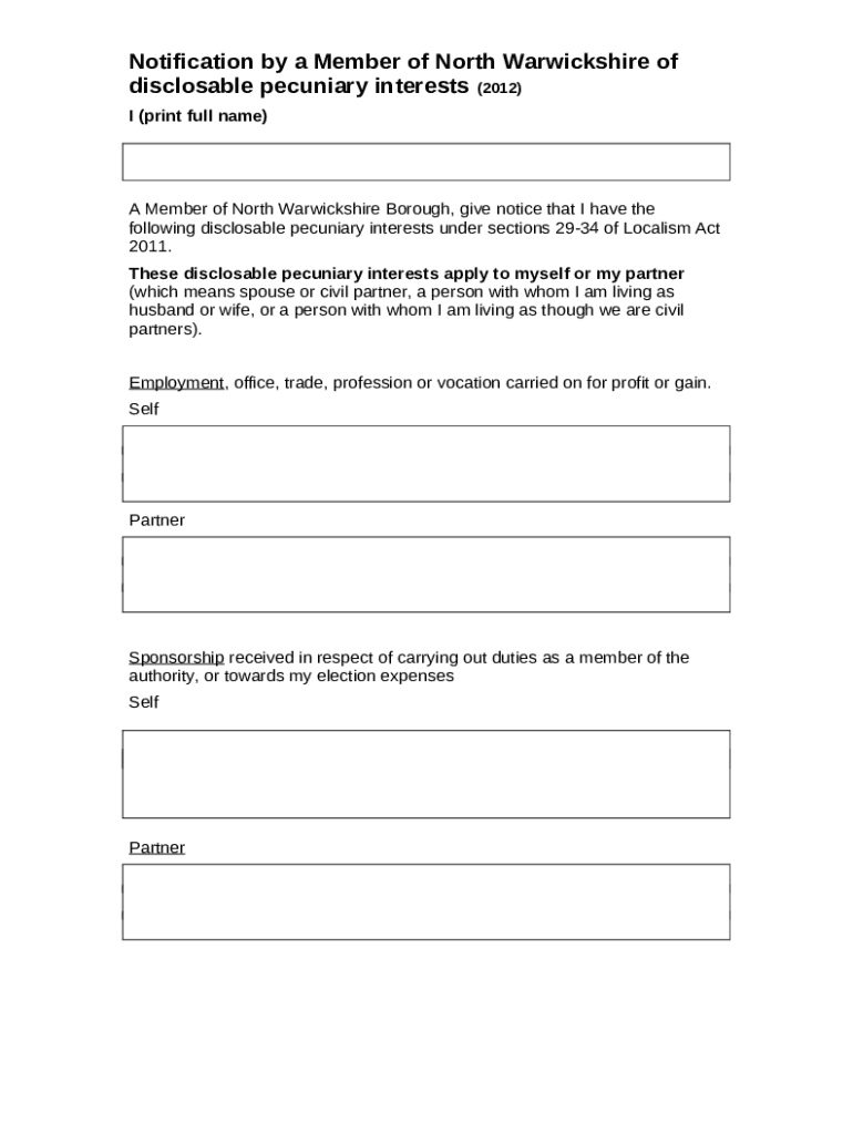 How to fill out Notification by a member of a Local Authority of Financial and other interests