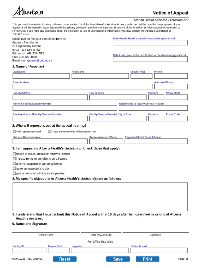 Get the free Notice of Appeal. To be completed by representative of residential addiction treatme...