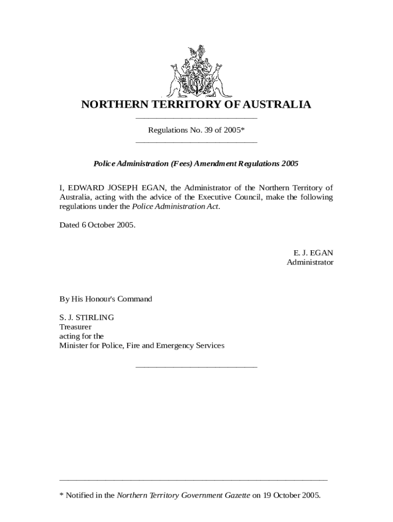 The Regulations - NT Legislation is a writable document needed to be submitted to the required address in order to provide some info. It needs to be completed and signed, which can be done manually in hard copy, or using a certain solution such as PDFfiller. It helps to complete any PDF or Word document directly in your browser, customize it according to your requirements and put a legally-binding e-signature. Right away after completion, the user can send the Regulations - NT Legislation to the appropriate receiver, or multiple ones via email or fax. The editable template is printable too due to PDFfiller feature and options proposed for printing out adjustment. In both electronic and physical appearance, your form should have a neat and professional look. You can also save it as the template for later, so you don't need to create a new blank form from scratch. Just edit the ready template.