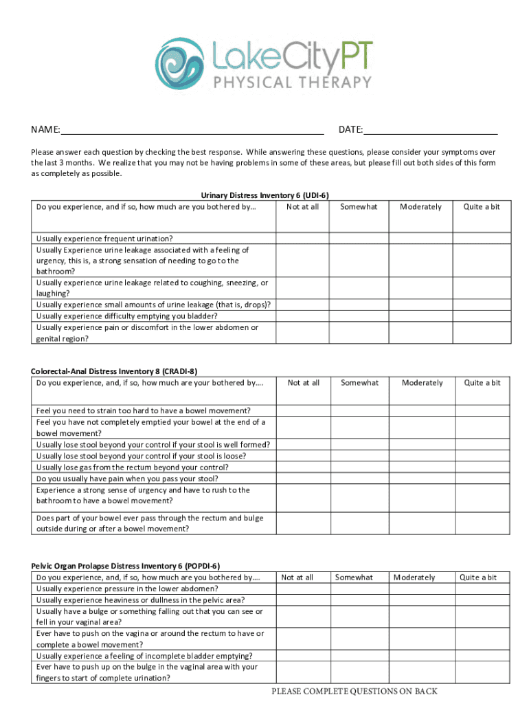 NAME:___DATE:___Please answer each question by checking the best response.While answering these questions, please consider your symptoms overthe last 3 months.We realize that you may not be having