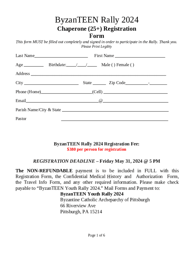 What is Byzanteen Youth RallyByzantine Catholic ... Form?