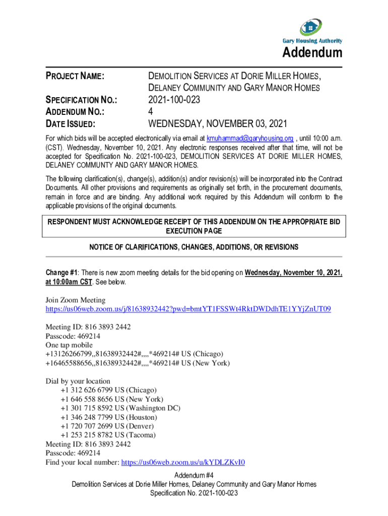 ADDENDUM NO.: