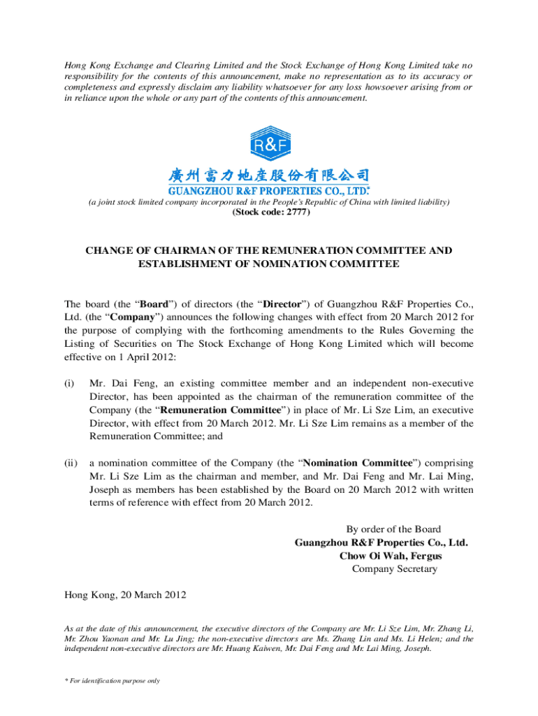 Hong Kong Exchange and Clearing Limited and the Stock Exchange of Hong Kong Limited take no responsibility for the contents of this announcement, make no representation as to its accuracy or completeness