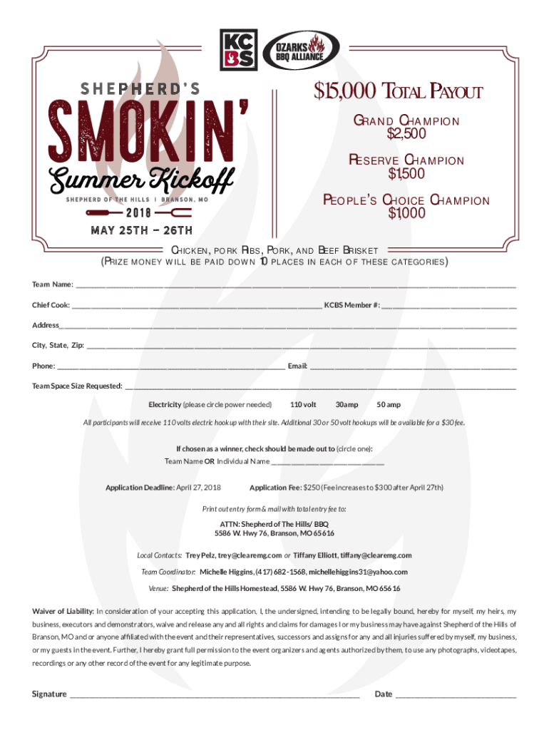 $15,000 TOTAL GRA NDAYOUTHA M PIO N$2,500RESERVEHA M PIO N$1,500PEO PL ESHO ICE$1,000HA M PIO NMay 25th 26thCHICKEN PO RK oIB S O RK A ND EEF RISKET (RIZE M O NEY W IL L B E PA ID DO W N w PL ACES