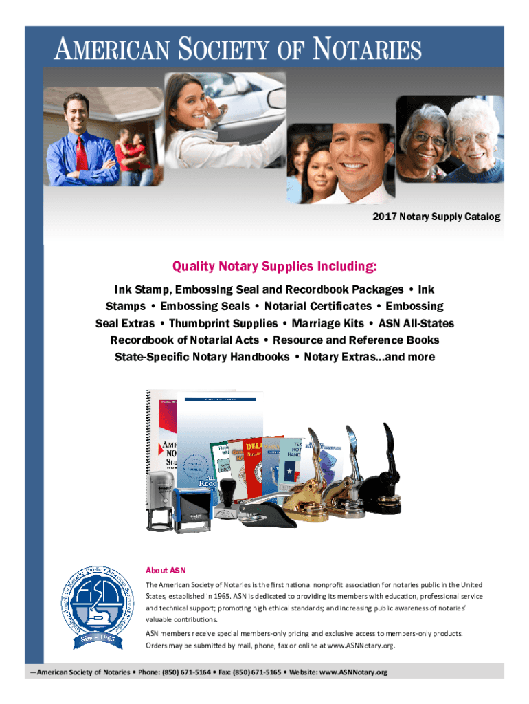 AMERICAN SOCIETY OF NOTARIES2017 Notary Supply CatalogQuality Notary Supplies Including: Ink Stamp, Embossing Seal and Recordbook Packages Ink Stamps Embossing Seals Notarial Certificates Embossing