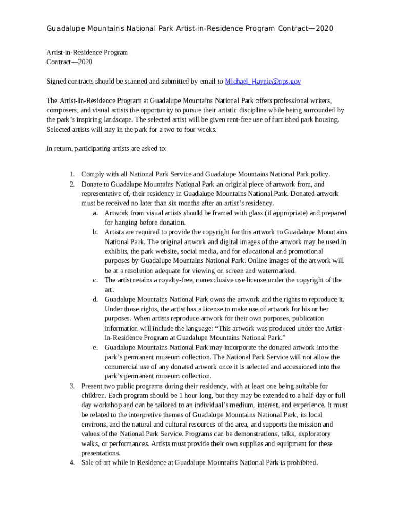 Instructions for the form Artist in Residence - Watercolor Artist and Nature Journalist