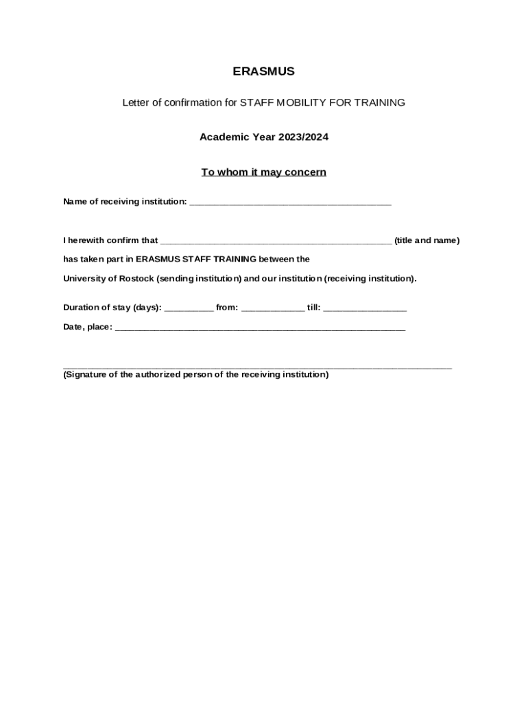 What is Erasmus Programme Staff Mobility: Training Confirmation ... Form?