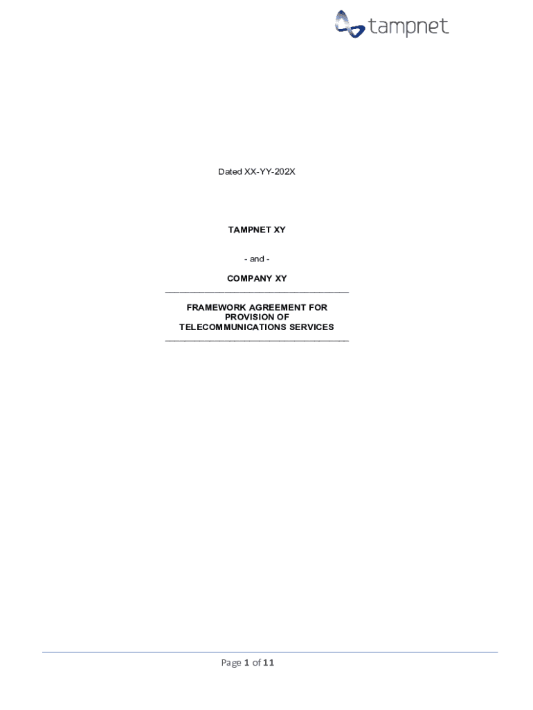 Dated XXYY202XTAMPNET XY and COMPANY XY ___ FRAMEWORK AGREEMENT FOR PROVISION OF TELECOMMUNICATIONS SERVICES ___Page 1 of 11INDEX ArticlePage1DEFINITIONS32INTERPRETATION43THE SERVICES54TERM55SUPPLIERS