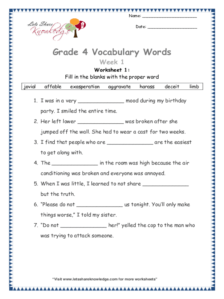 Edit your grade 4 vocabulary week form online