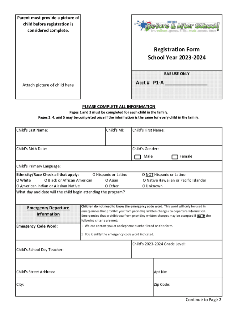 BAS USE ONLYAcct # P1A ___Attach picture of child release COMPLETE ALL INFORMATION