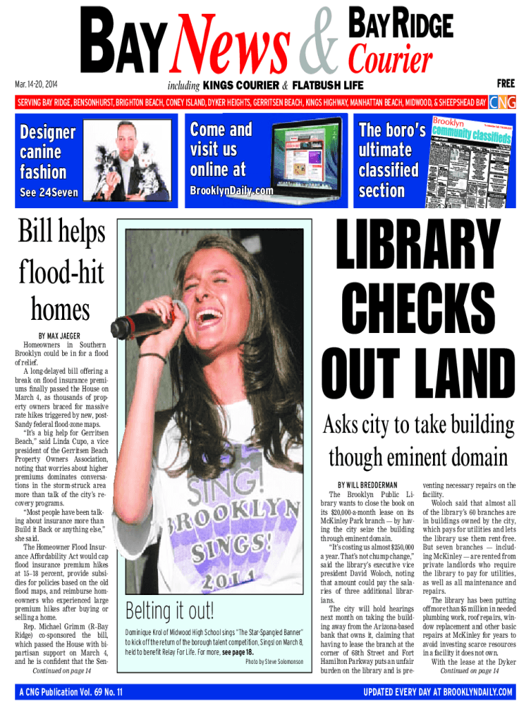 Mar. 1420, 2014including KINGS COURIER & FLATFISH LIFESAVING BAY RIDGE, BENSONHURST, BRIGHTON BEACH, CONEY ISLAND, DYER HEIGHTS, GARRISON BEACH, KINGS HIGHWAY, MANHATTAN BEACH, MIDWOOD, & SLEEPYHEAD