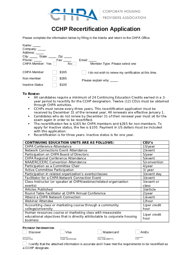 Instructions for the Please complete the ination below by filling in the blanks and return to the CHPA Office form