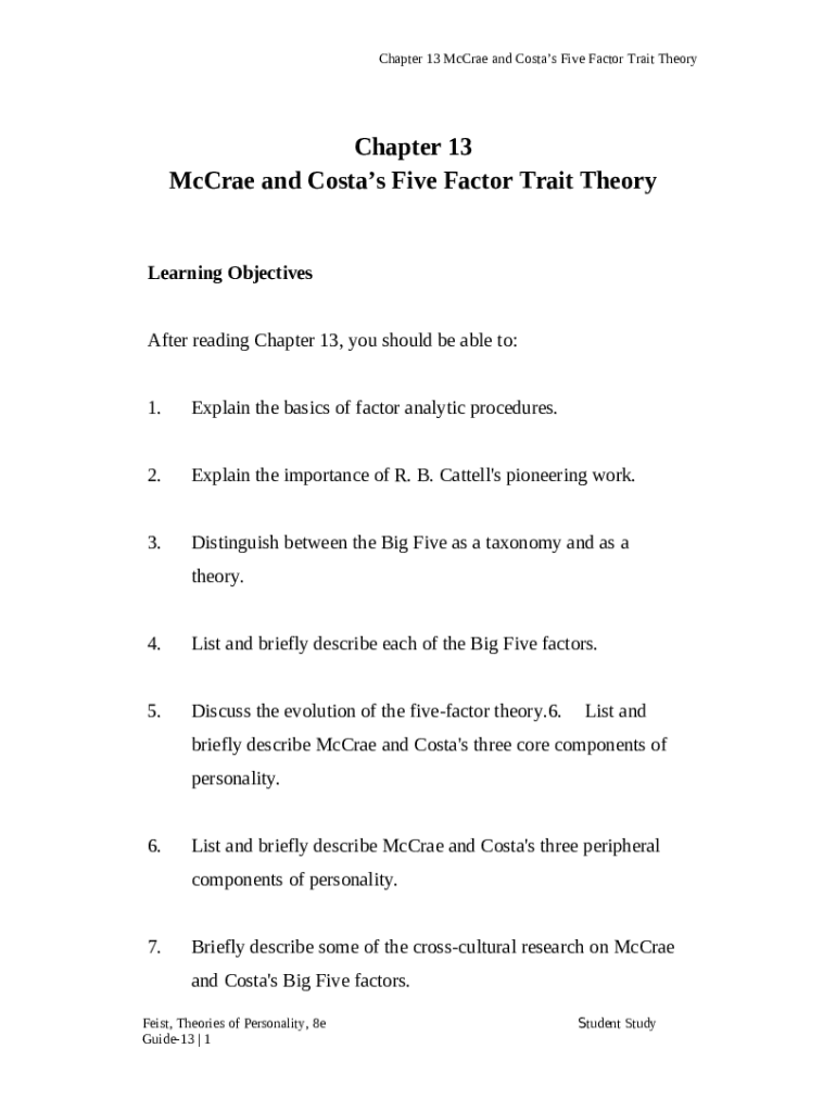 Frequently asked questions about Chapter 13 McCrae and Costa's Five Factor Trait Theory ... template