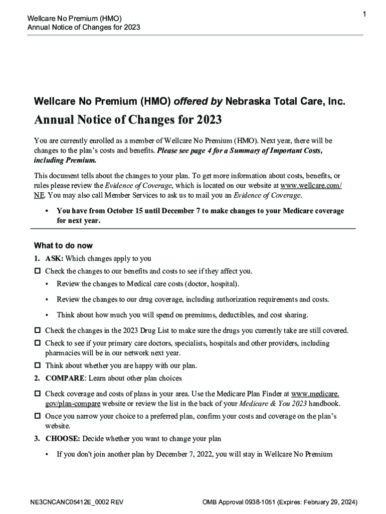 1Wellcare No Premium (HMO) Annual Notice of Changes for 2023Wellcare No Premium (HMO) offered by Nebraska Total Care, Inc.Annual Notice of Changes for 2023 You are currently enrolled as a member of