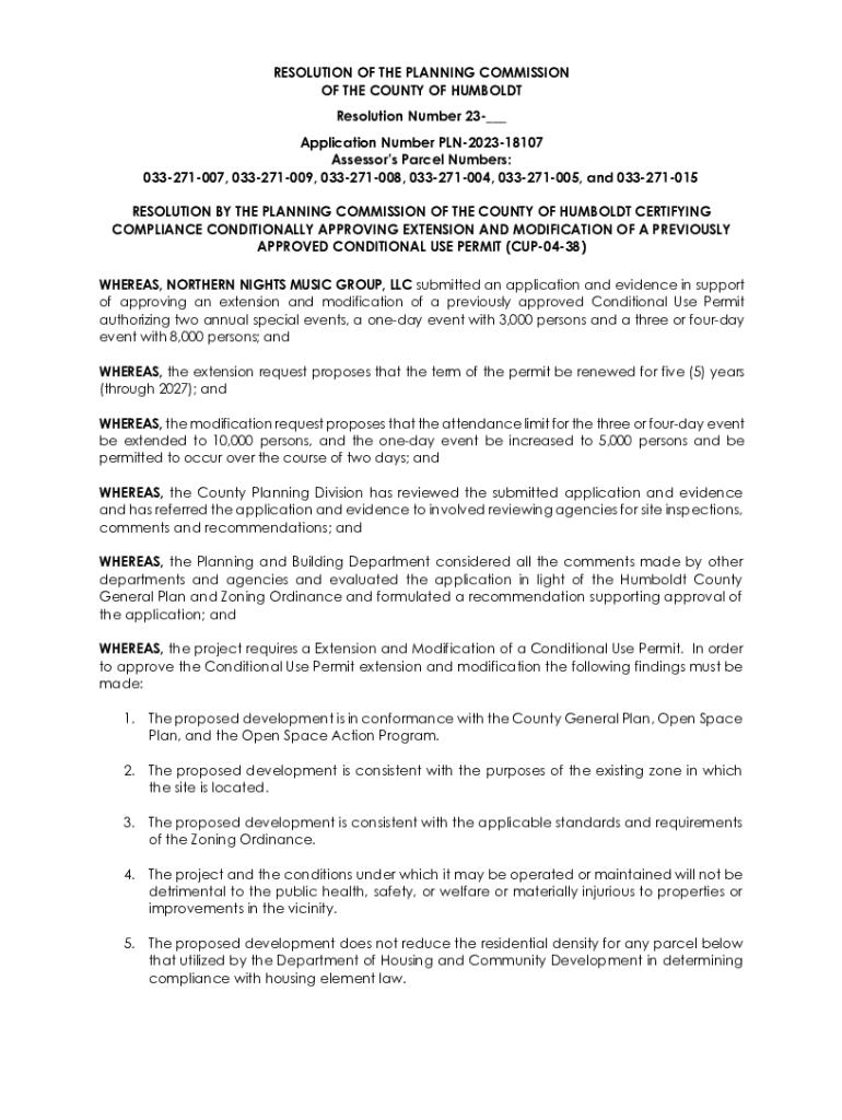 RESOLUTION OF THE PLANNING COMMISSION OF THE COUNTY OF HUMBOLDT Resolution Number 23___ Application Number PLN202318107 Assessors Parcel Numbers: 033271007, 033271009, 033271008, 033271004, 033271005,
