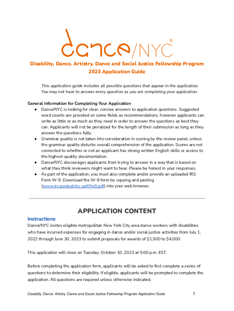 Disability. Dance. Artistry. Dance and Social Justice Fellowship Program 2023 Application Guide This application guide includes all possible questions that appear in the application. You may not have