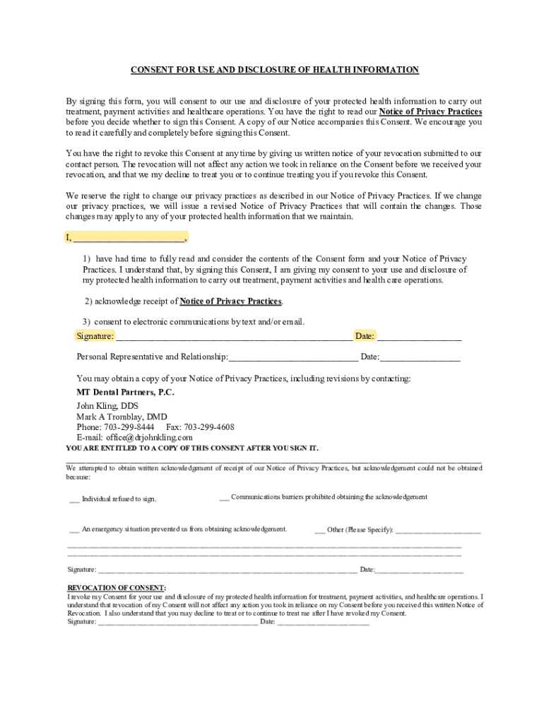CONSENT FOR USE AND DISCLOSURE OF HEALTH INFORMATION