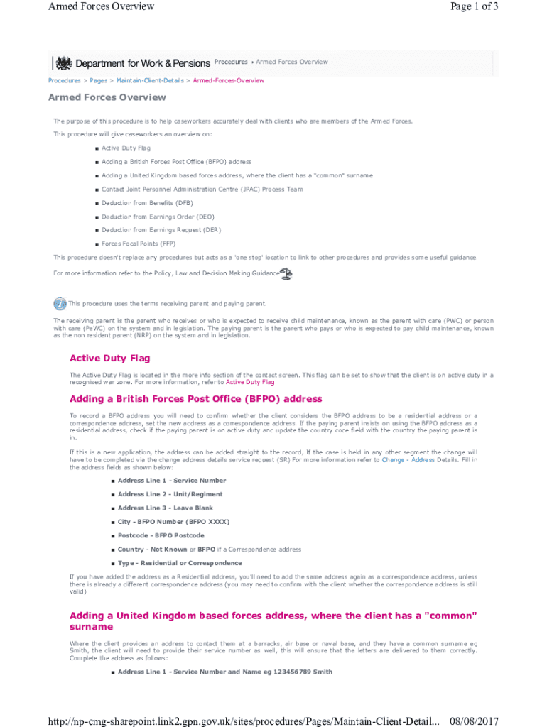 Armed Forces Overview Page 1 of 3ProceduresArmed Forces OverviewProcedures Pages MaintainClientDetails ArmedForcesOverviewArmed Forces Overview