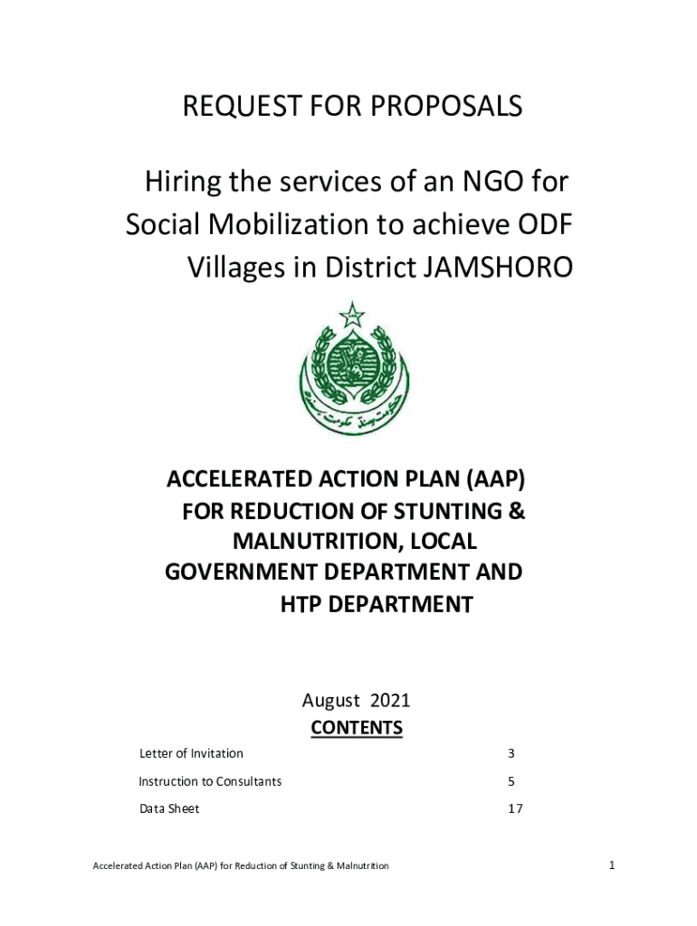 REQUEST FOR PROPOSALS Hiring the services of an NGO for Social Mobilization to achieve ODF Villages in District JAMSHOROACCELERATED ACTION PLAN (AAP) FOR REDUCTION OF STUNTING & MALNUTRITION, LOCAL