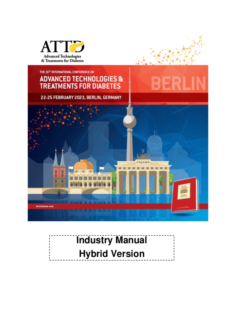 Industry Manual Hybrid VersionDear Supporter, We are happy to present you with the ATTD 2023 Industry Symposia Manual which will take place in Berlin, Germany on 22 25 February 2023. Venue address: