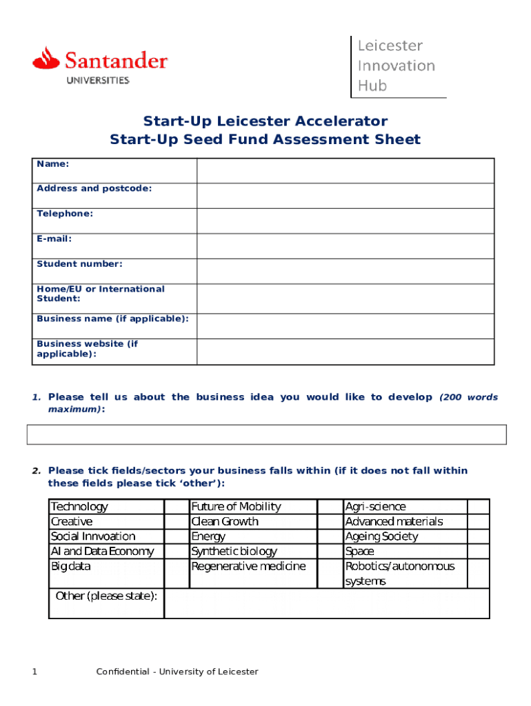 What is assessment-sheet-start-up-seed-fund. ... - le ac Form?