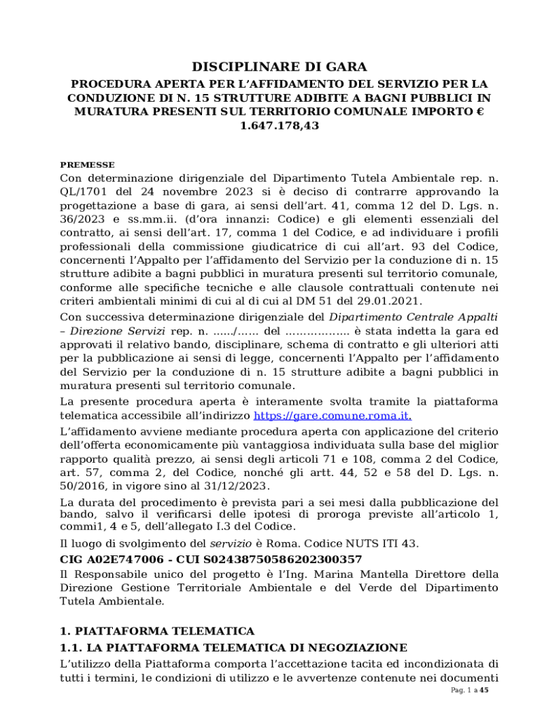 The Servizio per la conduzione biennale di n. 8 bagni pubblici ... is a document needed to be submitted to the specific address in order to provide specific info. It must be filled-out and signed, which may be done in hard copy, or by using a certain software such as PDFfiller. It lets you fill out any PDF or Word document directly from your browser (no software requred), customize it according to your purposes and put a legally-binding e-signature. Right away after completion, the user can send the Servizio per la conduzione biennale di n. 8 bagni pubblici ... to the appropriate individual, or multiple individuals via email or fax. The blank is printable as well thanks to PDFfiller feature and options offered for printing out adjustment. Both in electronic and in hard copy, your form should have a organized and professional appearance. You can also save it as the template for further use, there's no need to create a new blank form from scratch. You need just to edit the ready template.