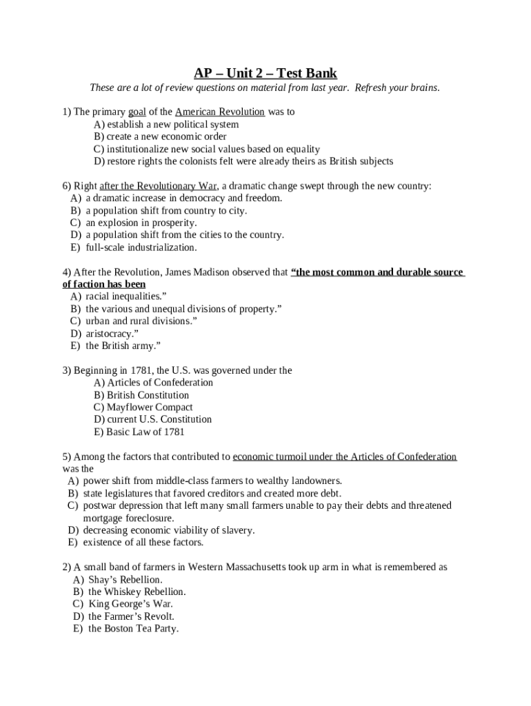 What is AP-Unit2-TestBank - AP Unit 2 Test Bank These are a lot of... Form?
