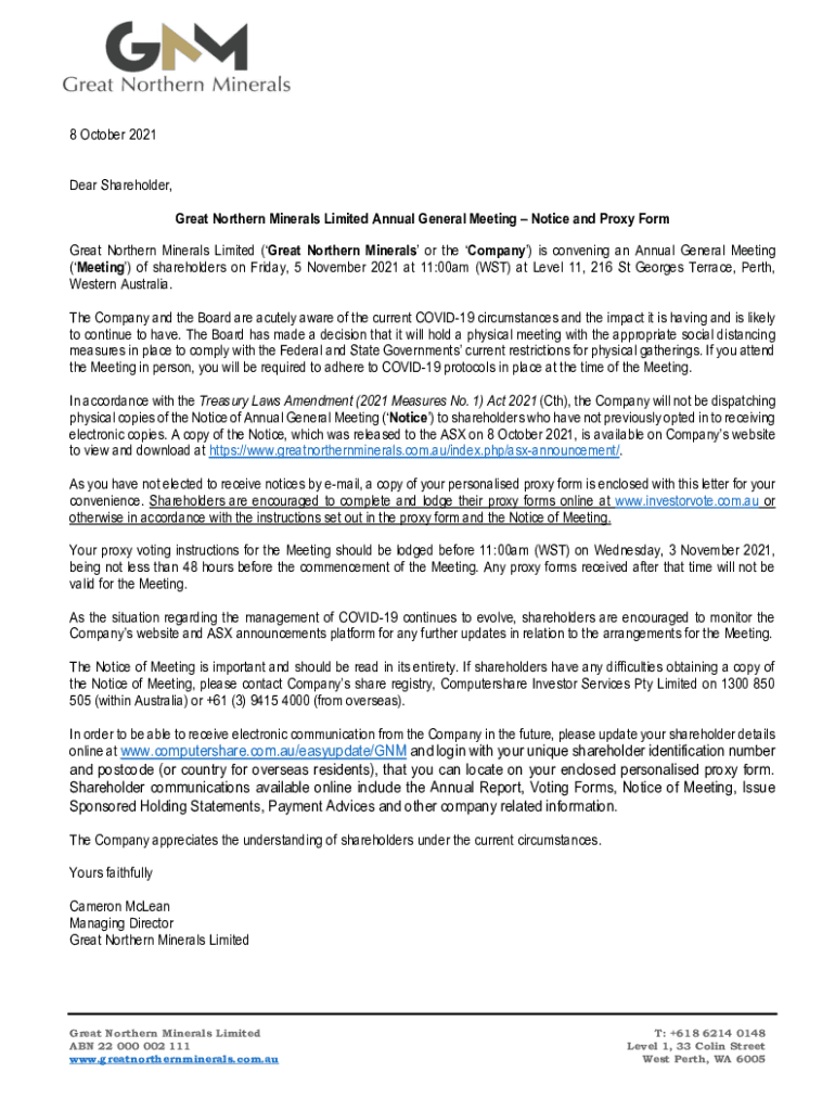 Great Northern Minerals Limited Annual General Meeting Notice and Proxy Form