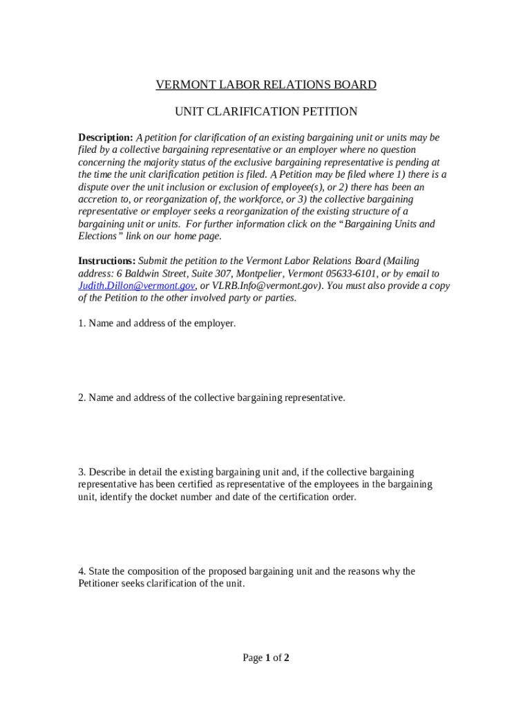 Bargaining Units and Elections - Vermont Labor Relations Board - vlrb vermont template instructions