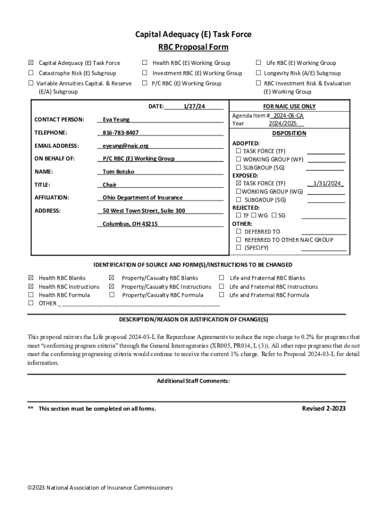 Capital Adequacy (E) Task Force Health RBC (E) Working Group Life RBC (E) Working Group Catastrophe Risk (E) Subgroup Investment RBC (E) Working