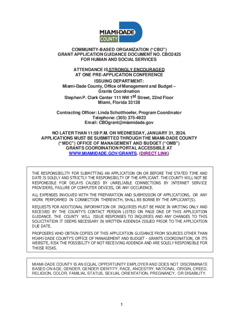 GRANT APPLICATION GUIDANCE DOCUMENT NO. CBO2425