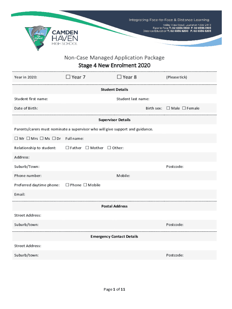 Year in 2020: Year 7 Year 8(Please tick)Student Details