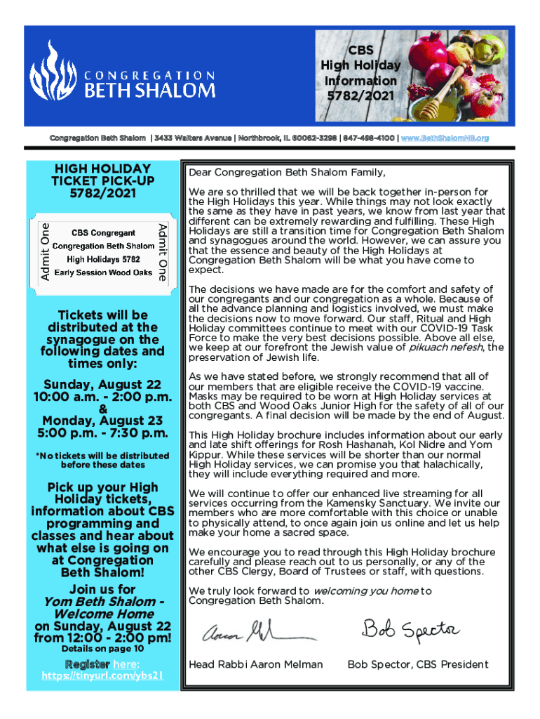 5782/2021Congregation Beth Shalom | 3433 Walters Avenue | Northbrook, IL 600623298 | 8474984100 | www.BethShalomNB.orgHIGH HOLIDAY