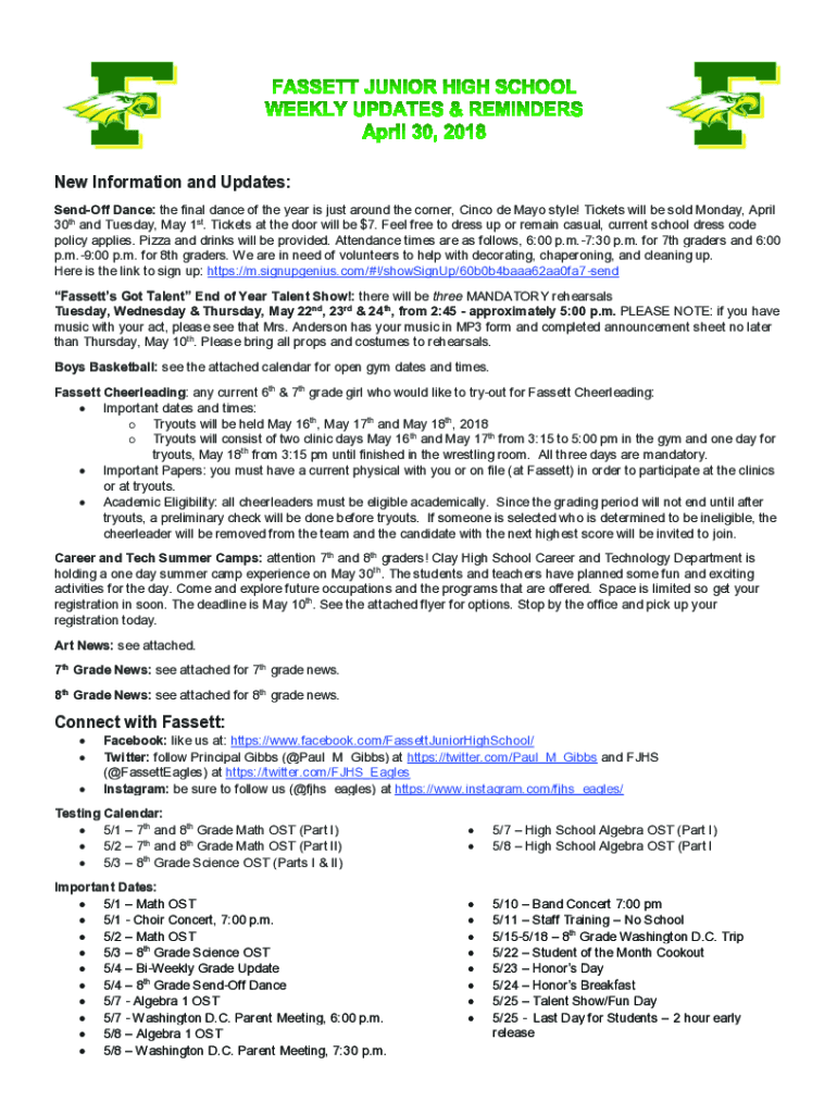 Sendoff Dance: the final dance of the year is just around the corner, Cinco de Mayo style! Tickets will be sold Monday, April