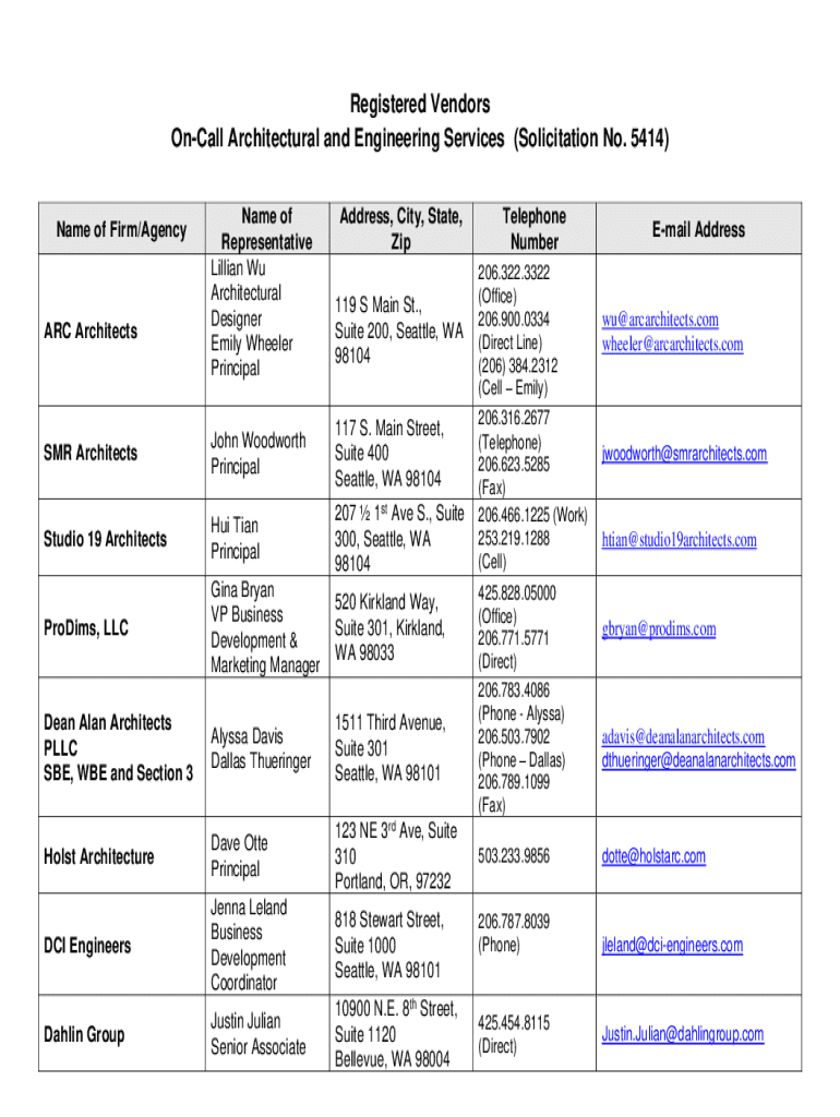 Get the free Registered Vendors On-Call Architectural and Engineering ...