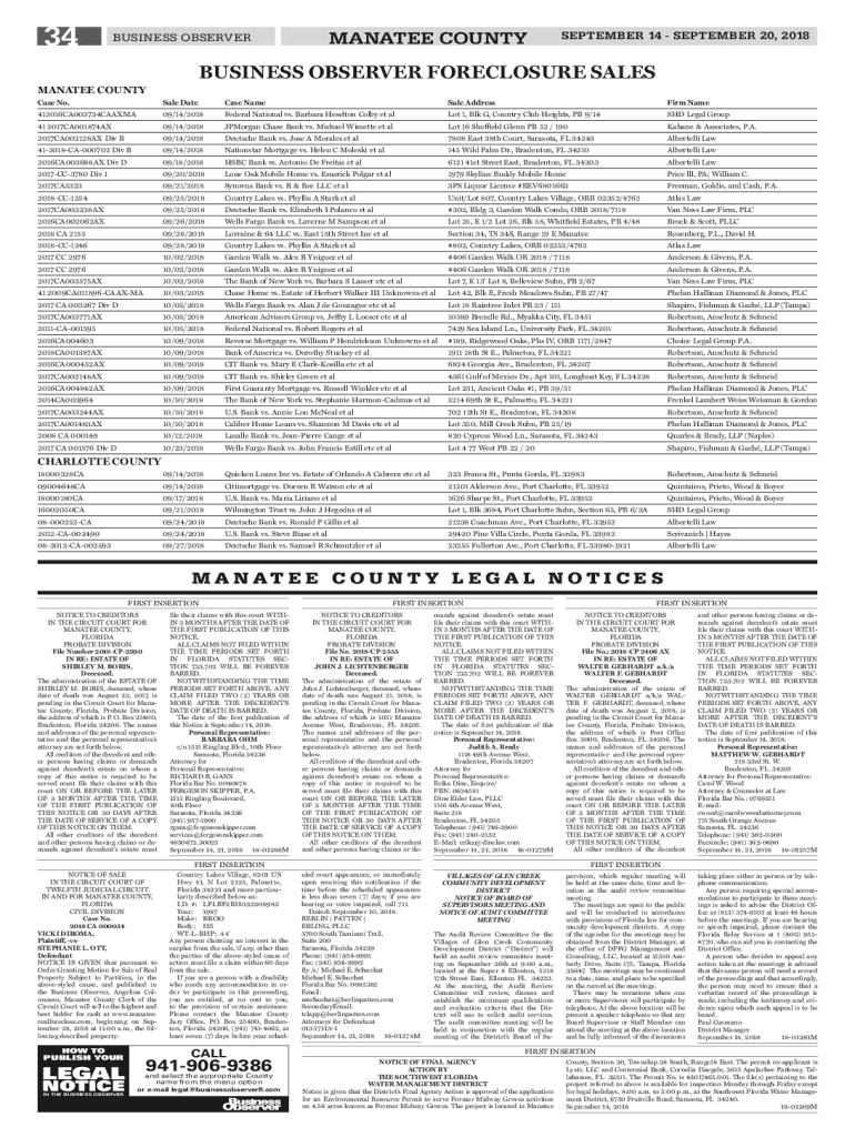 Get the free BUSINESS OBSERVER FORECLOSURE ... - Public Notices