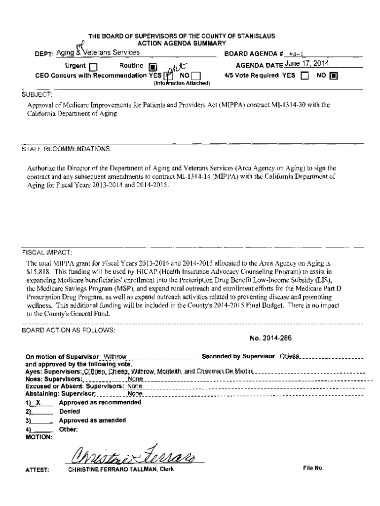 DEPT: Aging BOARD OF SUPERVISORS OF THE COUNTY OF STANISLAUS
