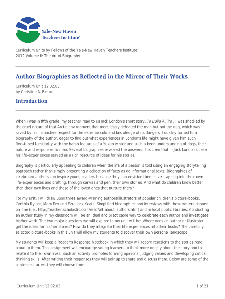 2012 Volume II: The Art of BiographyAuthor Biographies as Reflected in the Mirror of Their Works