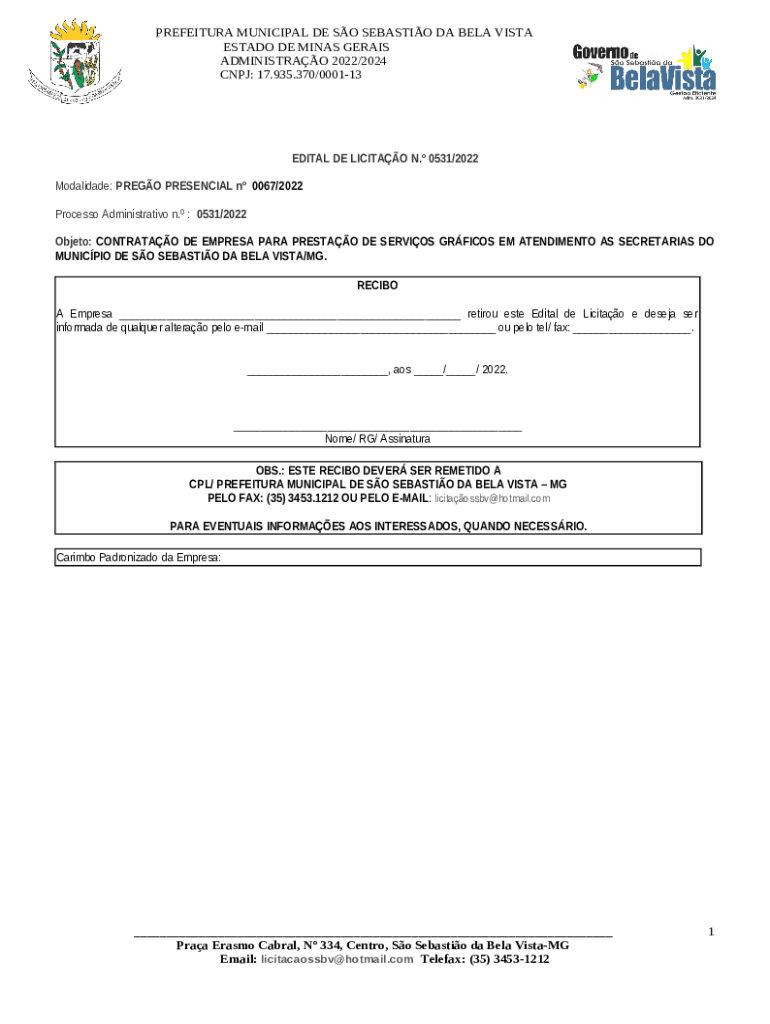 Objeto: CONTRATAO DE EMPRESA PARA PRESTAO DE SERVIOS GRFICOS EM ATENDIMENTO AS SECRETARIAS DO MUNICPIO DE SO SEBASTIO DA BELA VISTA/MG template instructions